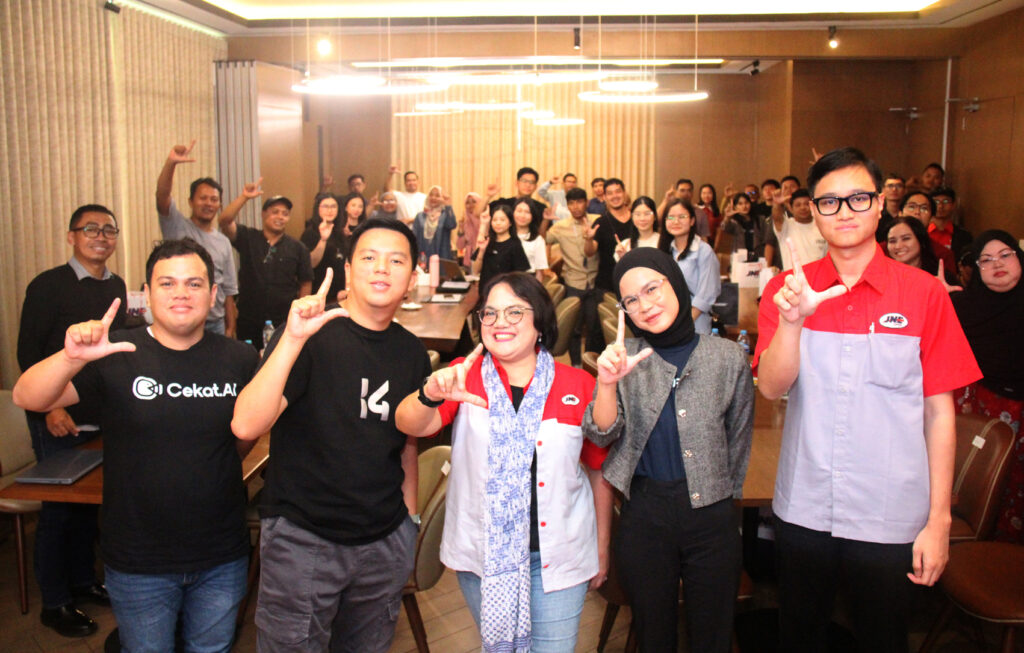 JNEWS – JNE menggelar acara ‘Gollaborasi Bergerak Bersama UMKM’ yang diikuti para pelaku UMKM, baik brand owner hingga reseller. Dalam acara, hadir empat pembicara yakni Hasmeliyani selaku National Sales Division Head JNE, kemudian Mey Hendrawan VP Sales & Solution Cekat AI dan Fitriana Rahma Business Development & Partnership Jubelio serta Rendy selaku Lead CST Snack Video.