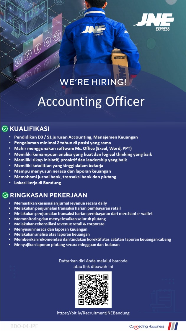 JNEWS – Perusahaan jasa kurir dan logistik nasional, JNE membuka lowongan kerja dengan penempatan kerja di Bandung dan sekitarnya.
