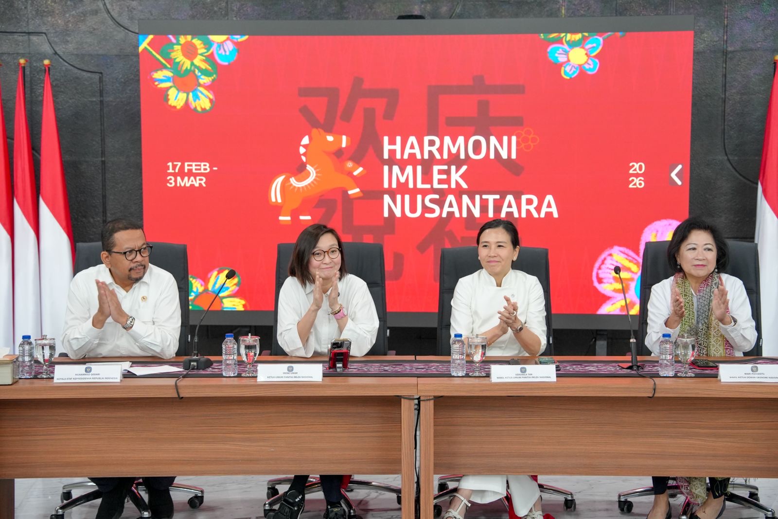 “Saya mau menjelaskan kenapa tema Imlek 2026 adalah ‘Harmoni Imlek Nusantara’ ini merupakan sebuah tema. Dan kenapa kudanya kita menggunakan kuda yang ini. Nanti ada maknanya,” ujar Irene.